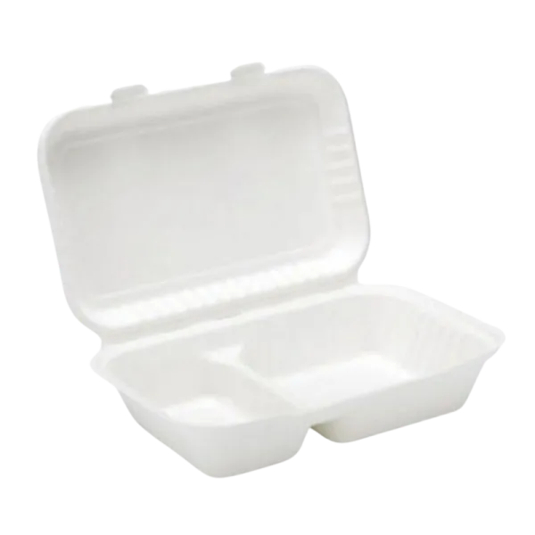 Bagasse Meal Box 2 Compartment (249x162x67mm/9.8×6″) White x250