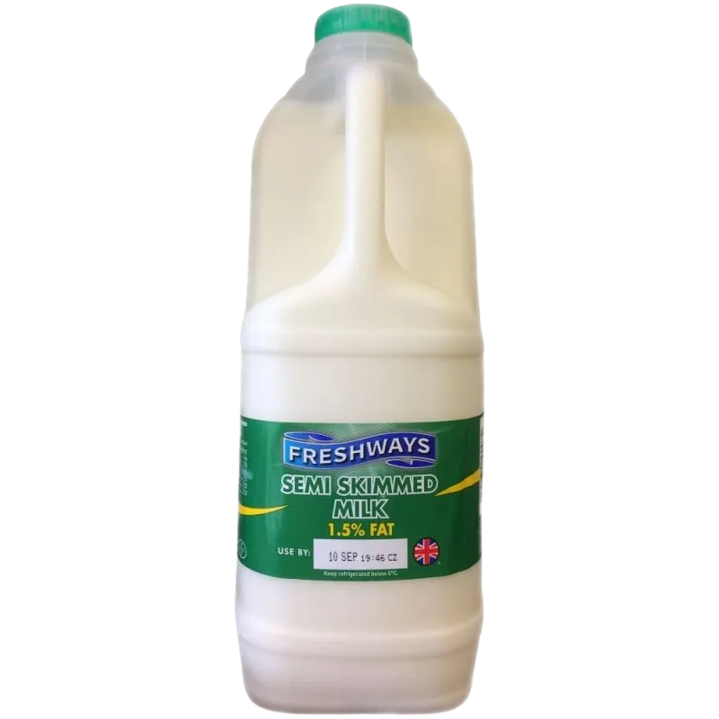 Pasteurised, standardised and homogenised fresh semi-skimmed milk with just 1.5% fat. Freshways only uses milk from cows farmed in the UK. Perfect for teas, foaming for coffees, brekfast cereals and cooking with. Each fresh milk is 2 Litres.