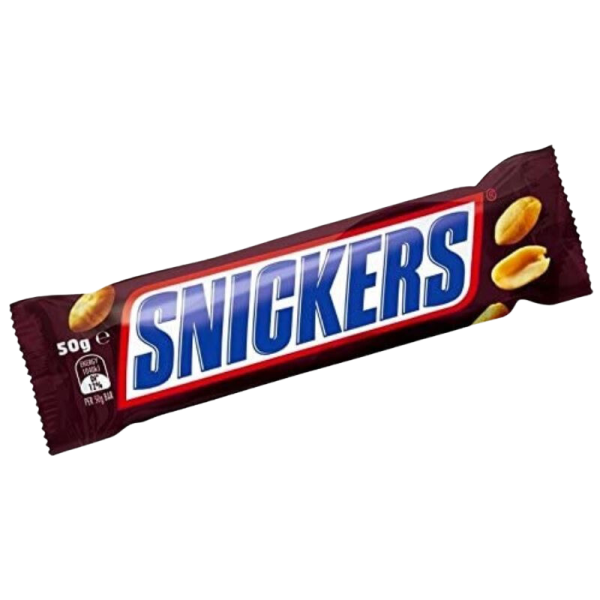 A delicious SNICKERS chocolate bar crammed with roasted peanuts, nougat, caramel, and covered with smooth milk chocolate.