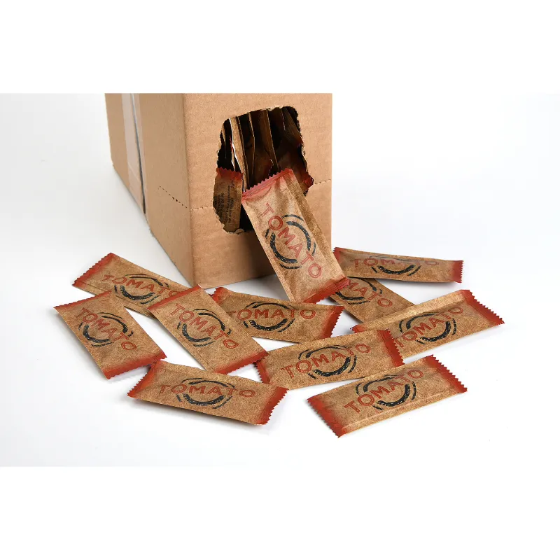 Tomato Ketchup sachets with sugar and sweetener.